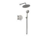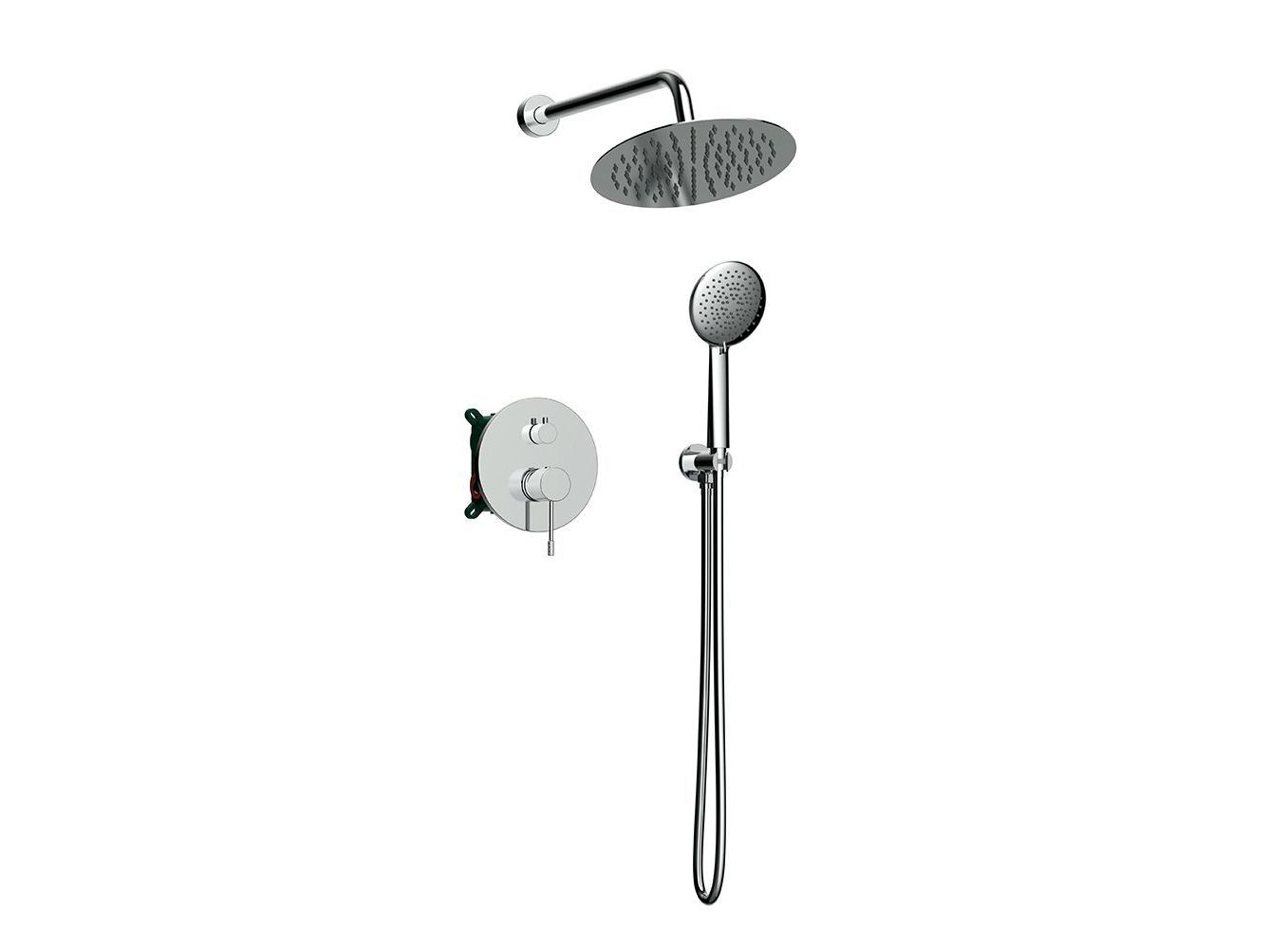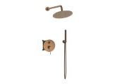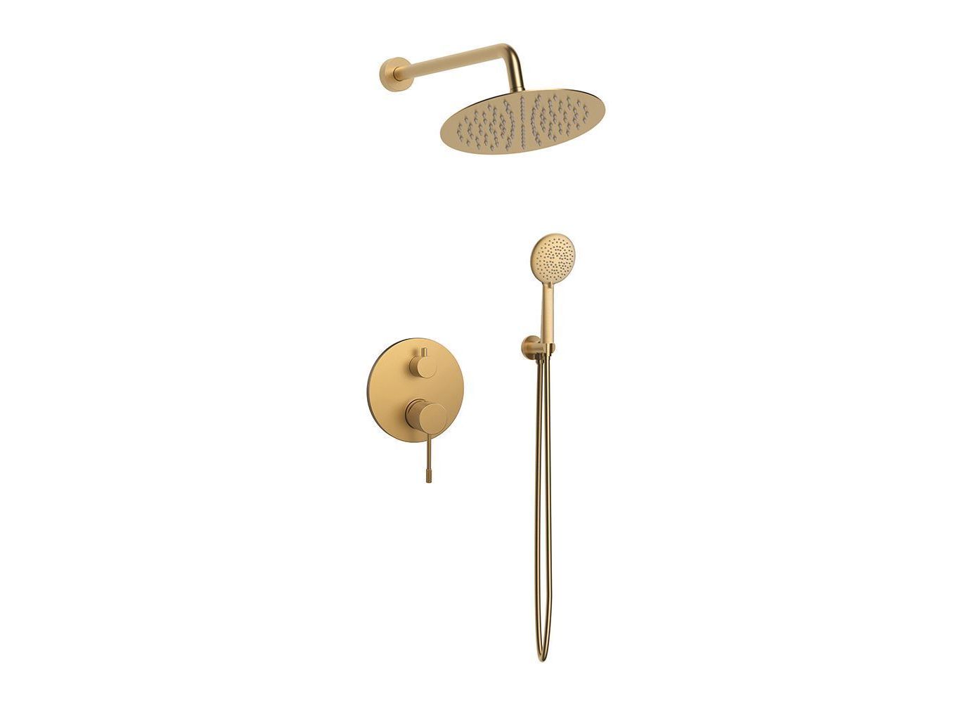 Μπαταρία λουτρού, εντοιχισμού, 2-σημείων χρωμέ με άριστη ποιότητα επινικέλωσης 5 στρωμάτων, που εγγυάται ευκολία στο καθάρισμα και λάμψη για πολλά χρόνια χρήσης και μπαταρία λουτρού σε μαύρο ματ, ροζ χρυσό και χρυσό σατινέ, με PVD φινίρισμα. Στρόγγυλος, επιτοίχιος βραχίονας κεφαλής ντουζ 30 εκ., με στρόγγυλη ροζέτα που κατασκευάζεται από υψηλής ποιότητας ορείχαλκο και κεφαλή ντουζ στρόγγυλη από ανοξείδωτο ατσάλι. Συνοδεύονται από επιτοίχια παροχή με στήριγμα τηλεφώνου από ορείχαλκο και μοντέρνο τηλέφωνο ντουζ με στρόγγυλη κεφαλή 3-θέσεων σετ με εύκαμπτο χρωμέ, ορειχάλκινο σπιράλ. Συνοδεύεται από 5-ετή γραπτή εργοστασιακή εγγύηση και υποστηρίζεται από πλήρη γκάμα ανταλλακτικών.
